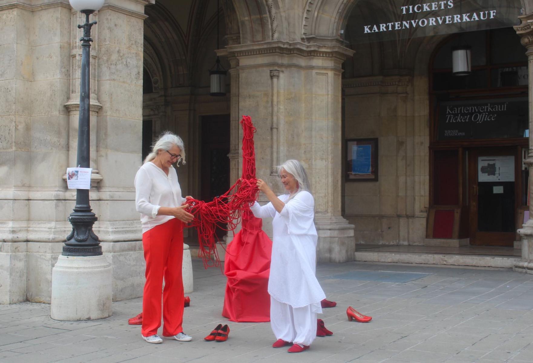 Ich tanze gerne im Wind – und Wasser ist sowieso mein Element. Aber starker Regen und starke Windböen sind schon anstrengend. Ich kann den Sonnenschirm nicht offen benutzen, wie ich es mir zuerst ausgedacht hatte, aber die Installation ist so vielleicht noch stärker – genauso wie die ursprünglich angekündigte Papierinstallation witterungsbedingt nicht funktioniert. Den Wunschbaum werde ich vielleicht beim nächsten Mal verändert realisieren. Für diesmal ist dieser Partizipationsaspekt in den Online-Bereich verschoben: entweder im Blog selber kommentieren oder längere Inhalte bitte mir per E-Mail zuschicken.