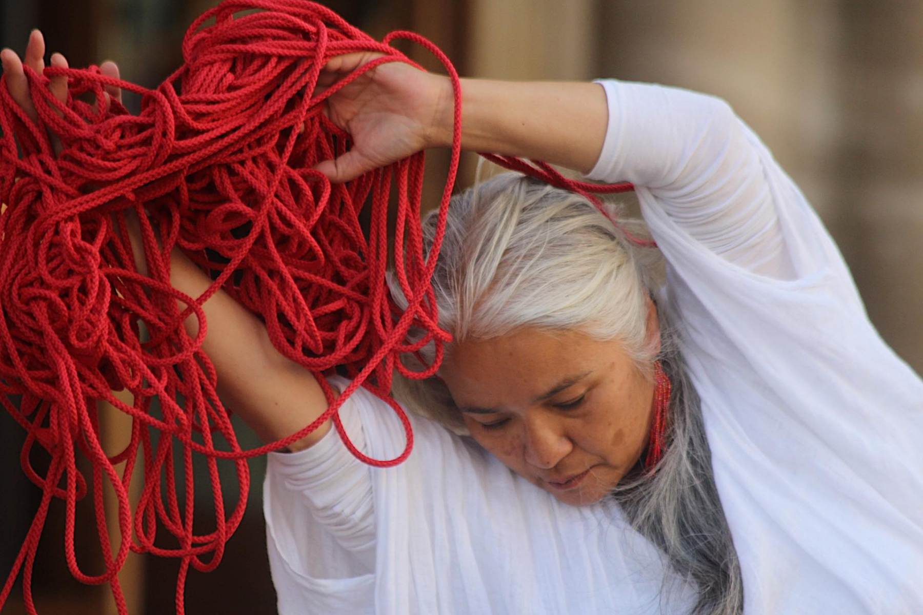 Immer fragen Leute nach den roten Schuhen. Das ist eine Referenz auf Installationen, die weltweit gemacht werden um auf die steigende Zahl an Femizide, oder Feminizide, aufmerksam zu machen. OBRA hat schon mehrmals an die 80 Paar rote Schuhe ausgestellt. Meistens haben wir darin auch performt. Bei RED Silence schaffe ich es nicht mehr als 7 Paare täglich selber zu transportieren…..